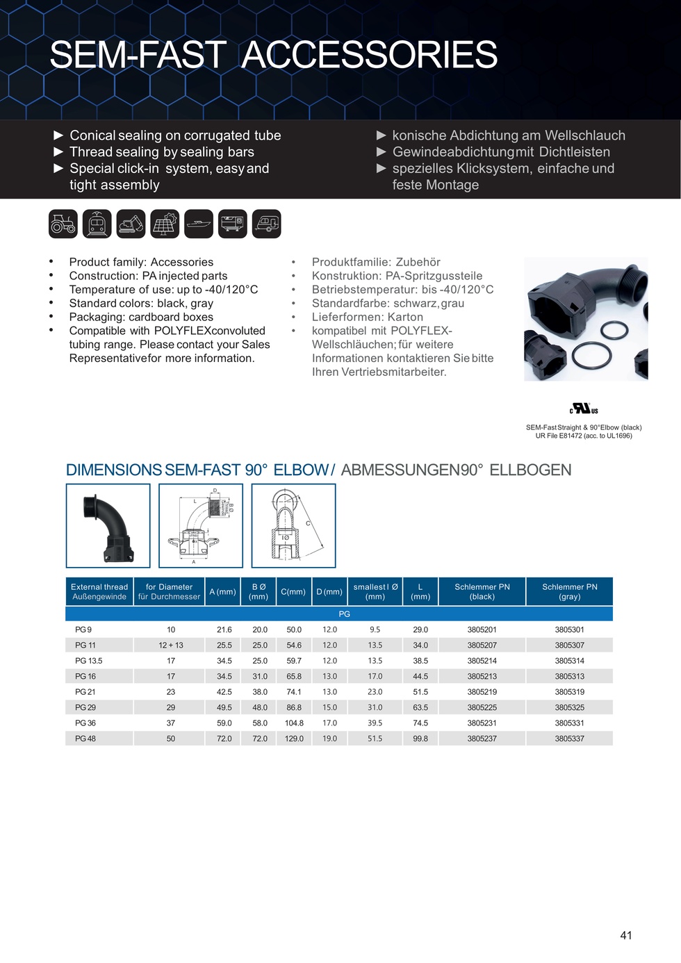 Schlemmer 3805307 SEMFAST 90D ELBOW PG11 NW12 + 13 GREY